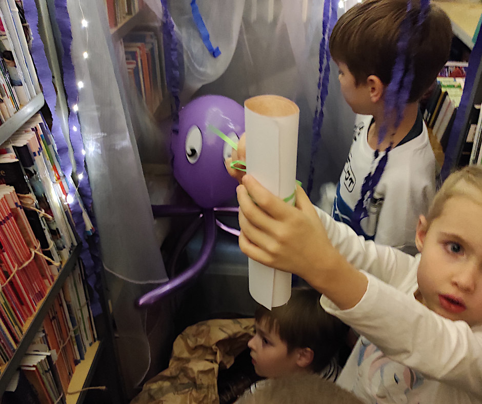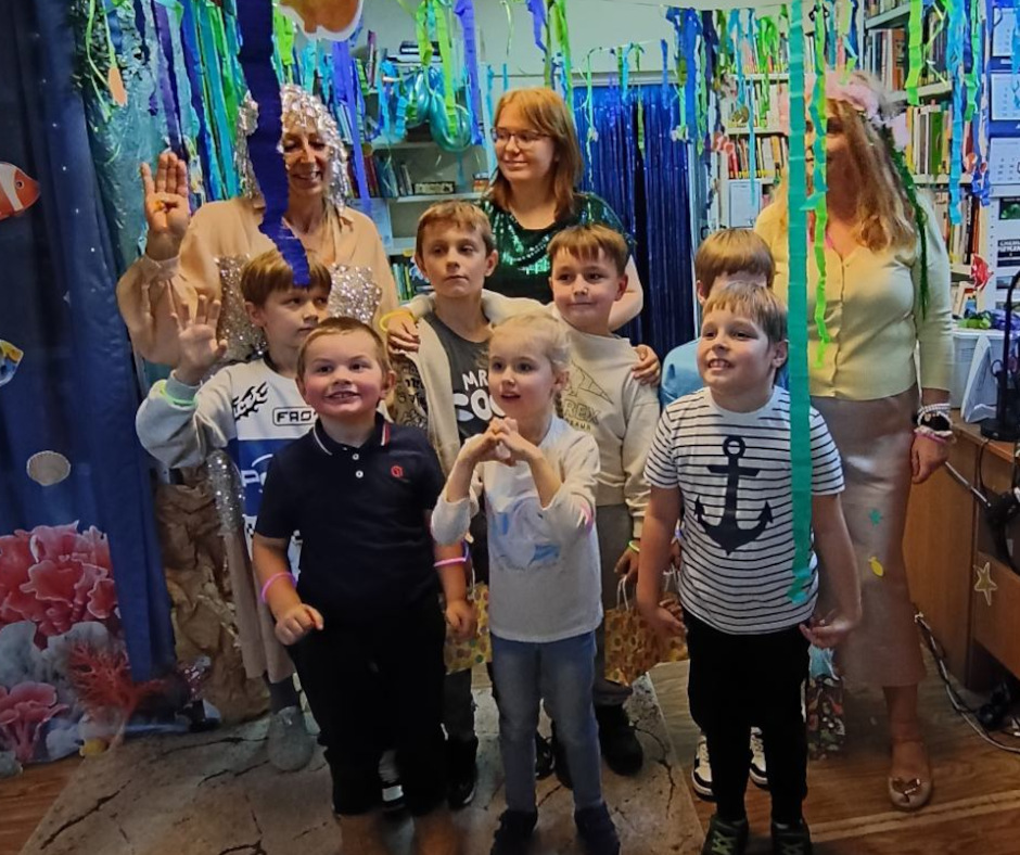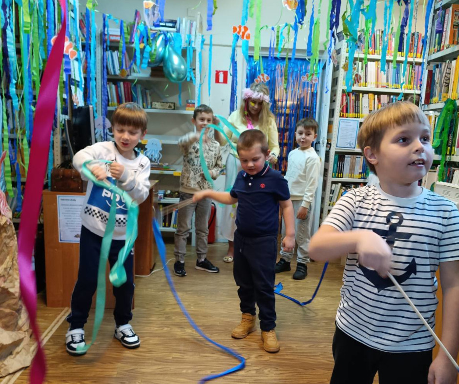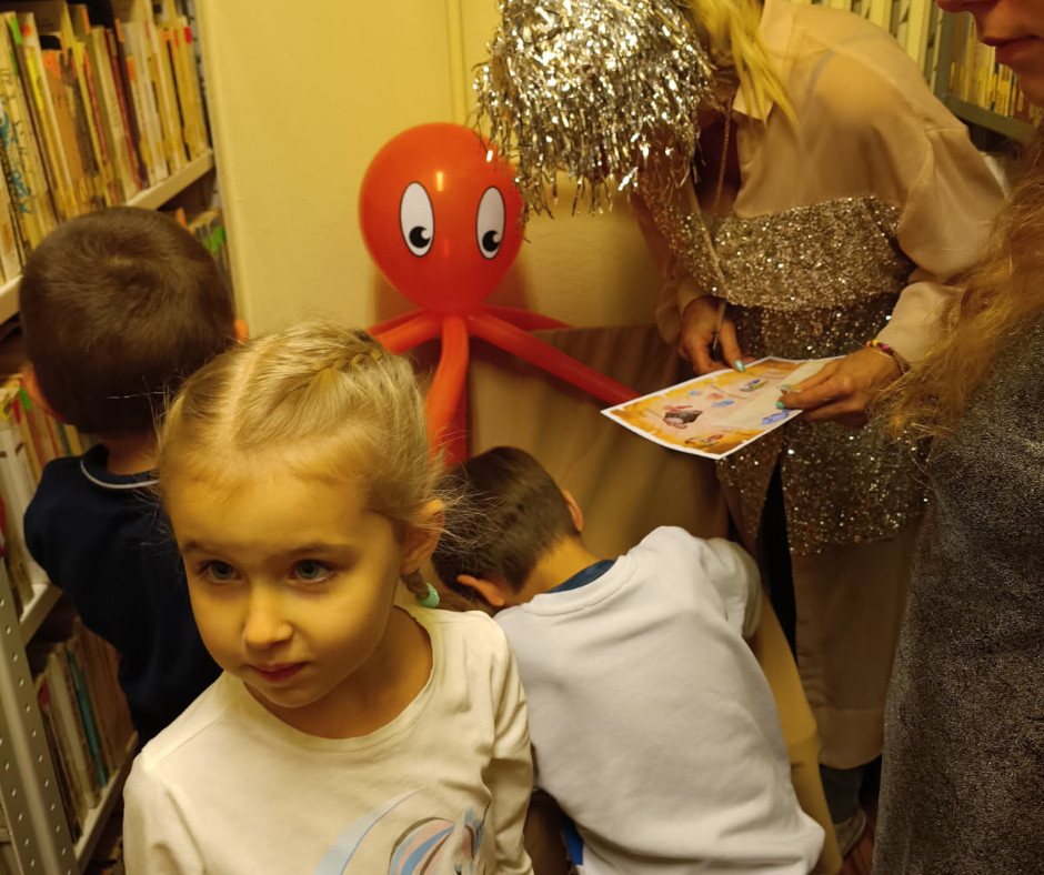 Tego niezwykłego wieczoru nasza biblioteka zamieniła się w tajemnicze koralowe królestwo, w którym czekały na dzieci opowieści, teatrzyk i mnóstwo zabawy!
