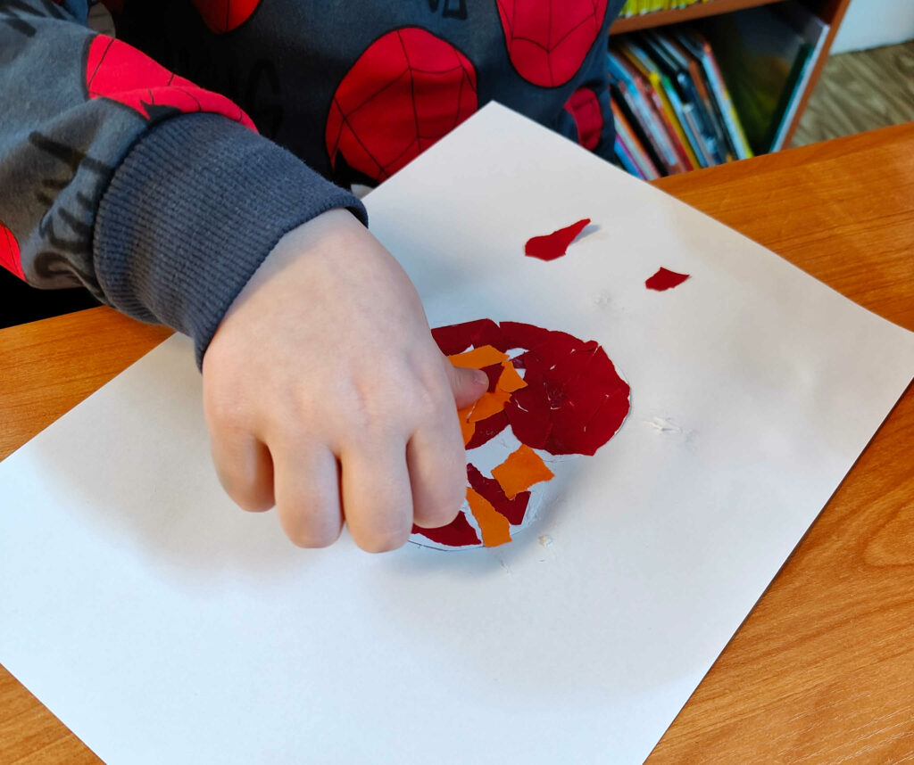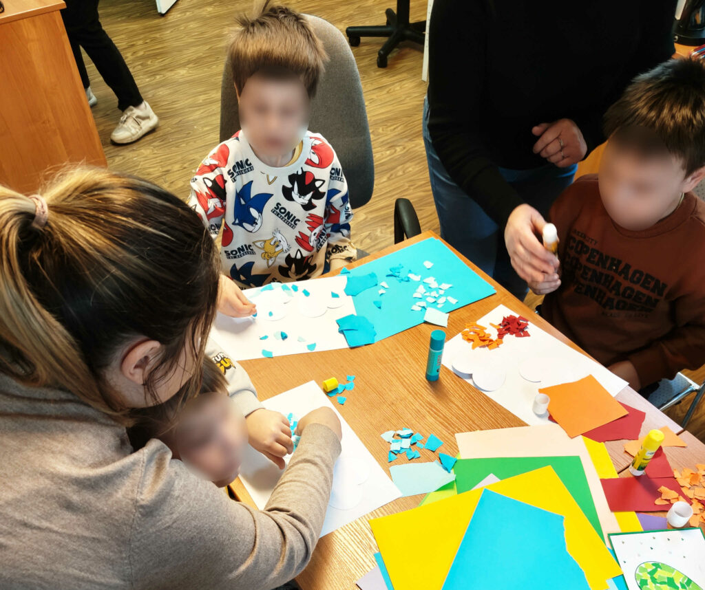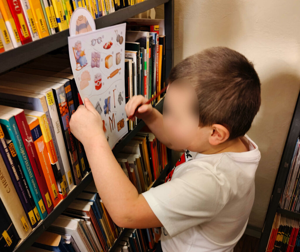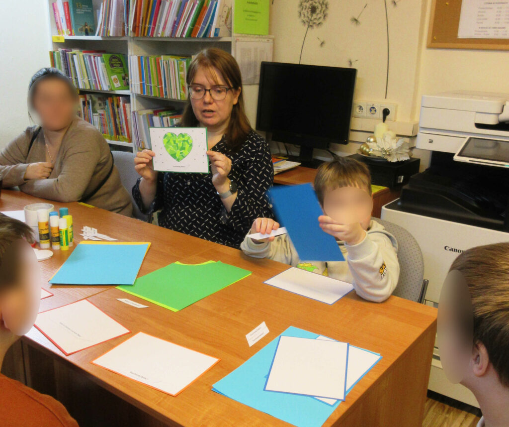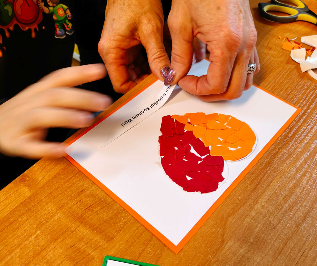 Podczas pierwszego spotkania stworzyli papierowe serce dla Babci i Dziadka, a po twórczej pracy z zapałem szukali zagubionych w Bibliotece przedmiotów związanych z babcią i dziadkiem.