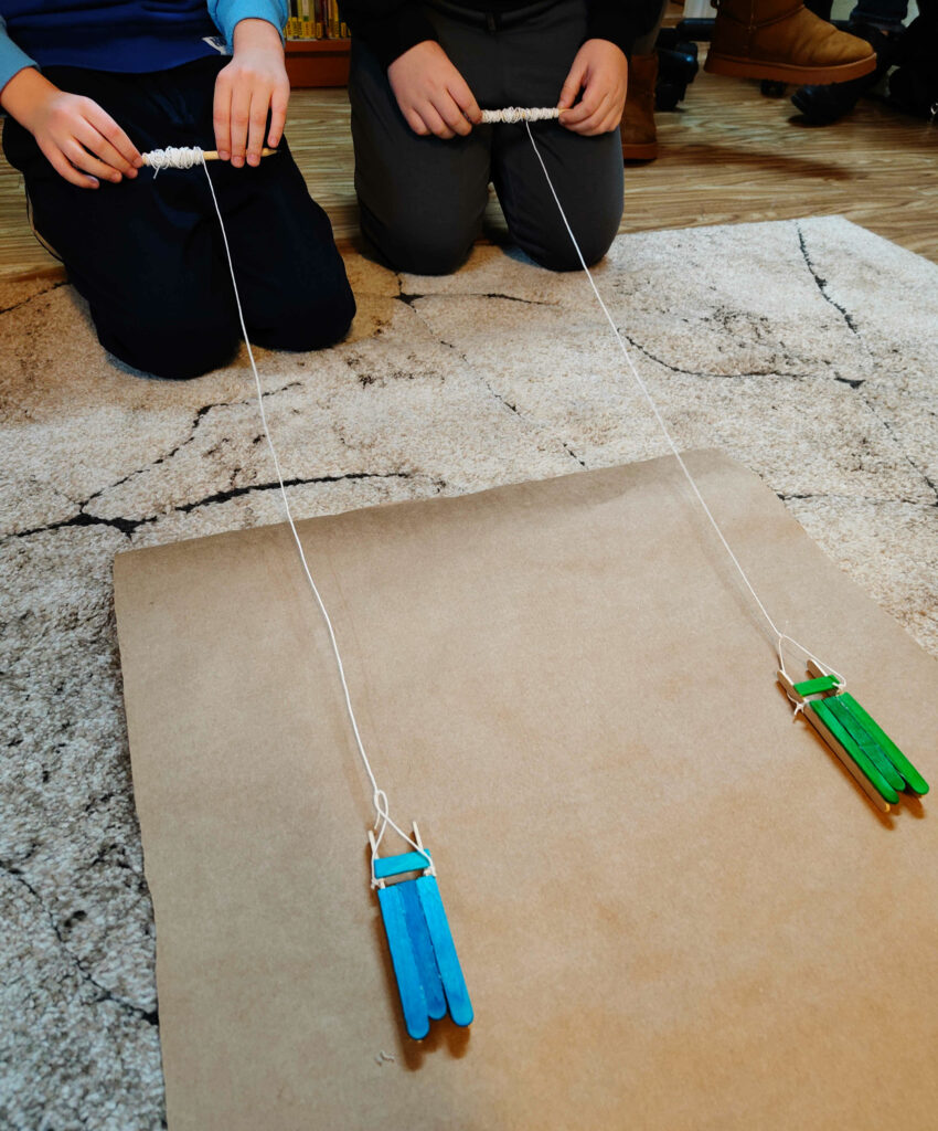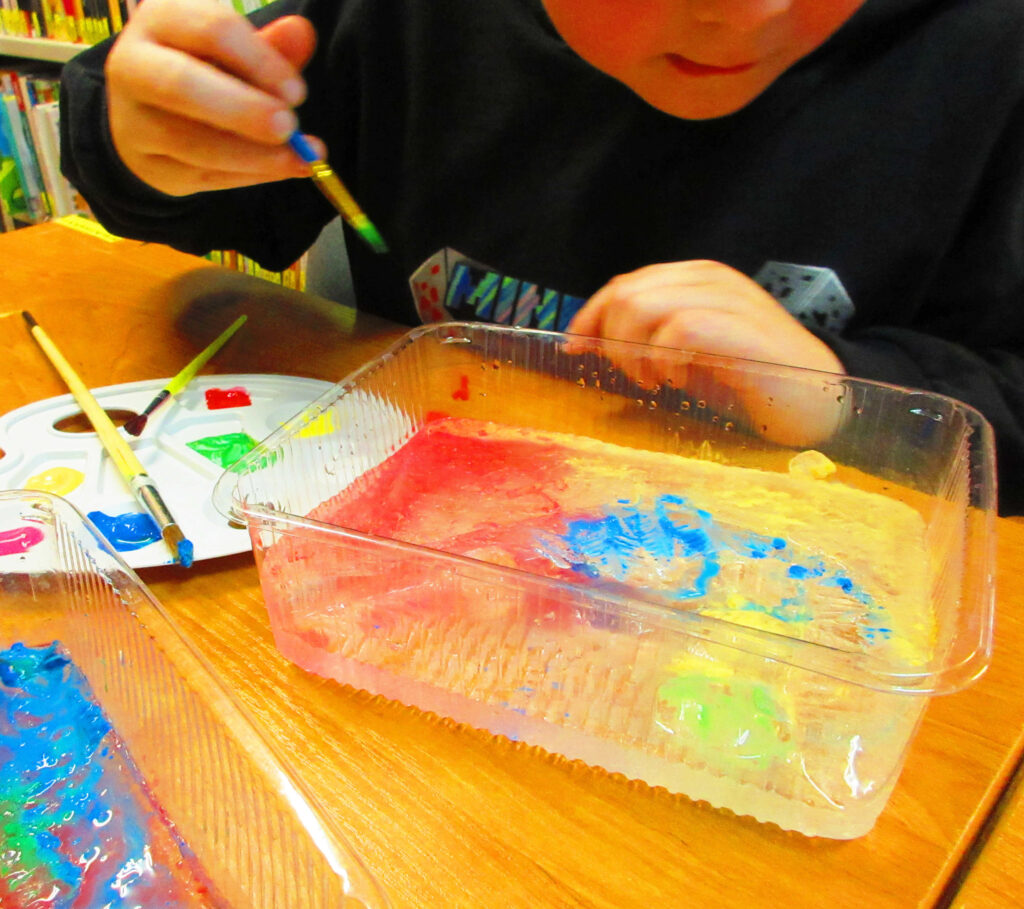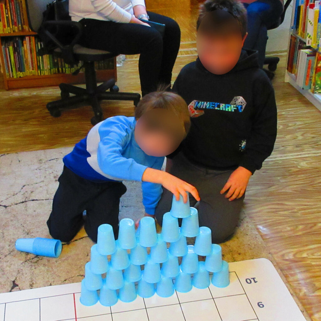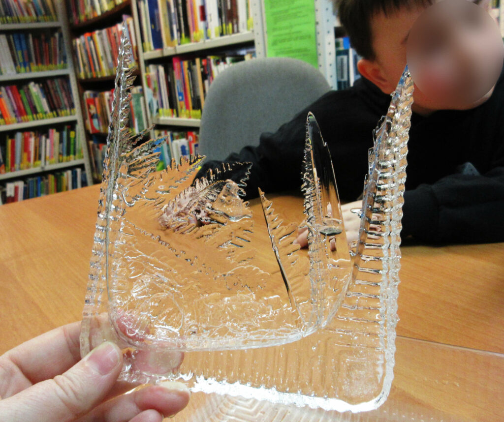 W czasie kolejnych zajęć młodzi Goście przenieśli się do „Krainy Pani Zimy”, gdzie czekało na nich kilka zimowych wyzwań: lodowe malowanie, saneczkowe wyścigi, bitwa na śnieżki, wspólne tworzenie dużego płatka śniegu na macie do kodowania, czy rozpoznawanie zwierzęcych tropów ukrytych w Bibliotece.