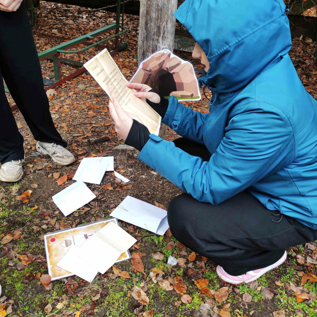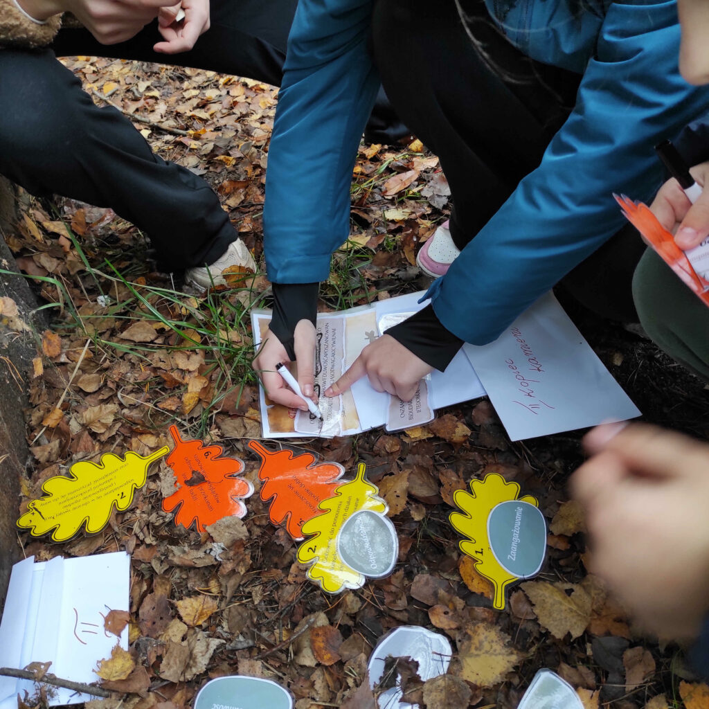 Uczniowie, podzieleni na zespoły, z mapą w rękach, odnajdywali kolejne stacje, rozwiązywali zagadki i wykonywali zadania.